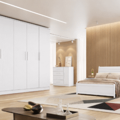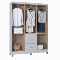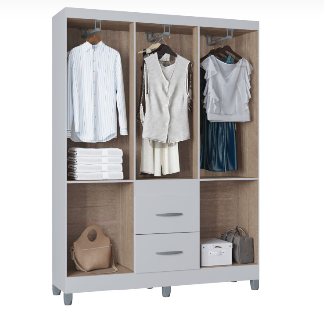 Conta com corrediças metálicas, cabideiro resistente e kit pés, unindo praticidade e durabilidade. Seu acabamento branco traz leveza e combina facilmente com diferentes estilos de ambiente.