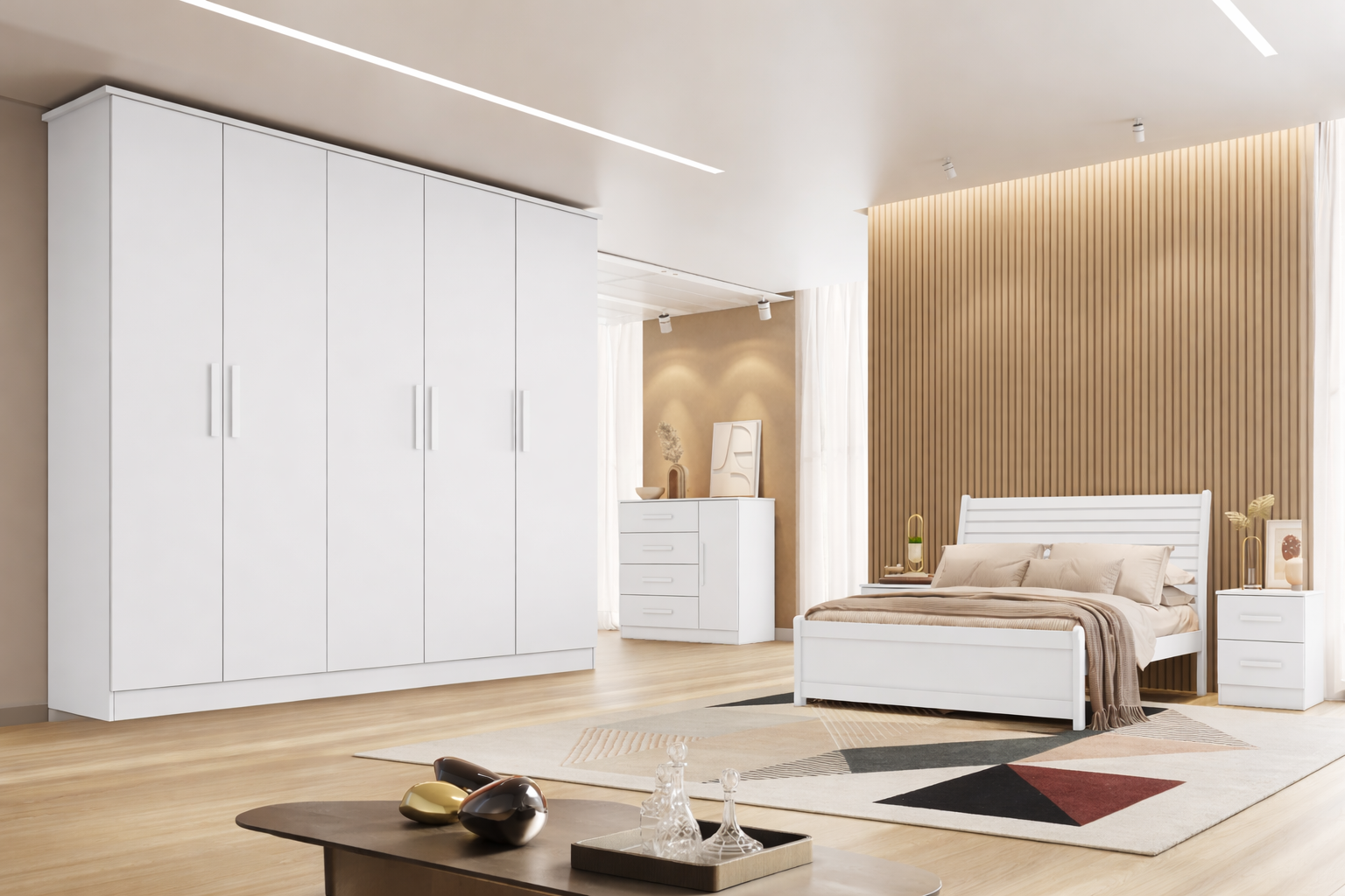Roupeiro Nina Casal 06 Portas 04 gavetas larg. 2,20cm Branco